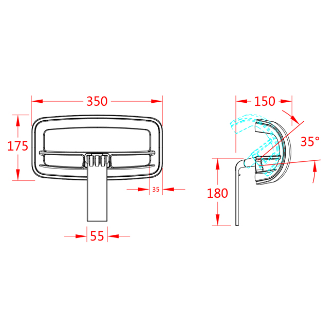 特征: ? 實現(xiàn)翻轉(zhuǎn)功能,旋轉(zhuǎn)角度為35°。 ? 搭配2021夾實現(xiàn)鎖定高度功能,升降高度為60 mm。 ? 材料:尼龍玻纖頭枕支架,PP頭枕框。